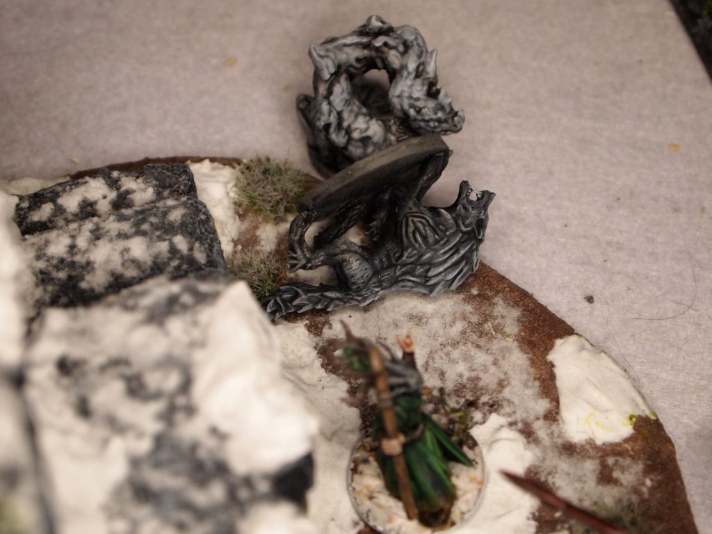This where it all started to unravel. Galenglim and Gurthbor kept Borock busy but Galenglim was brought down before Gurthbor finished him off. The rest of the the war band were slowly whittled away including Mirhen the apprentice. Durnimlath was left all alone and made a break, heading back to the door to leave but was brought down by gnoll archer, inches away from reaching it.