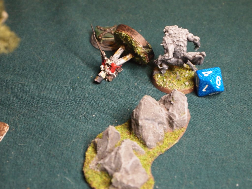 The Otto miniature started out as a drummer so needed a bit of modification to turn the drum into a powder keg, carving the drum to make it look like a barrel with green stuff for the hoops, fuse and rope handle. The sword came from my bits box. Ausgang had a green stuff apron, doctor’s bag and spectacles added and the shako was cut down to make a cap as I found a reference suggesting that Brunswicker surgeons wore caps. Typically I can’t find the reference again at the time of writing. Not to worry, it was on the internet so must be true.