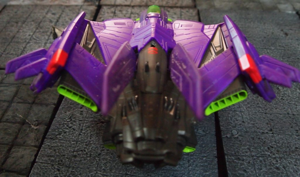 Overall I am pleased with the results although they are not exactly what I wanted. I think if I do something similar again I will add two coats of the chipping medium as some areas didn’t chip very well. I also might see if there are any generic space ship type waterslide decals to buy and add them later. Another thing I might do is add the missiles that I’ve currently left off. I’d cut them so that they fit flush with fuselage and make them look part of it. That is, if I can find them, I pinged them off somewhere in my lounge and haven’t seen them for a while. Some things don’t change much with age as this was the fate of many of similar darts and the like when I was a kid.