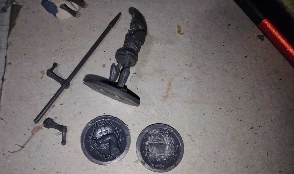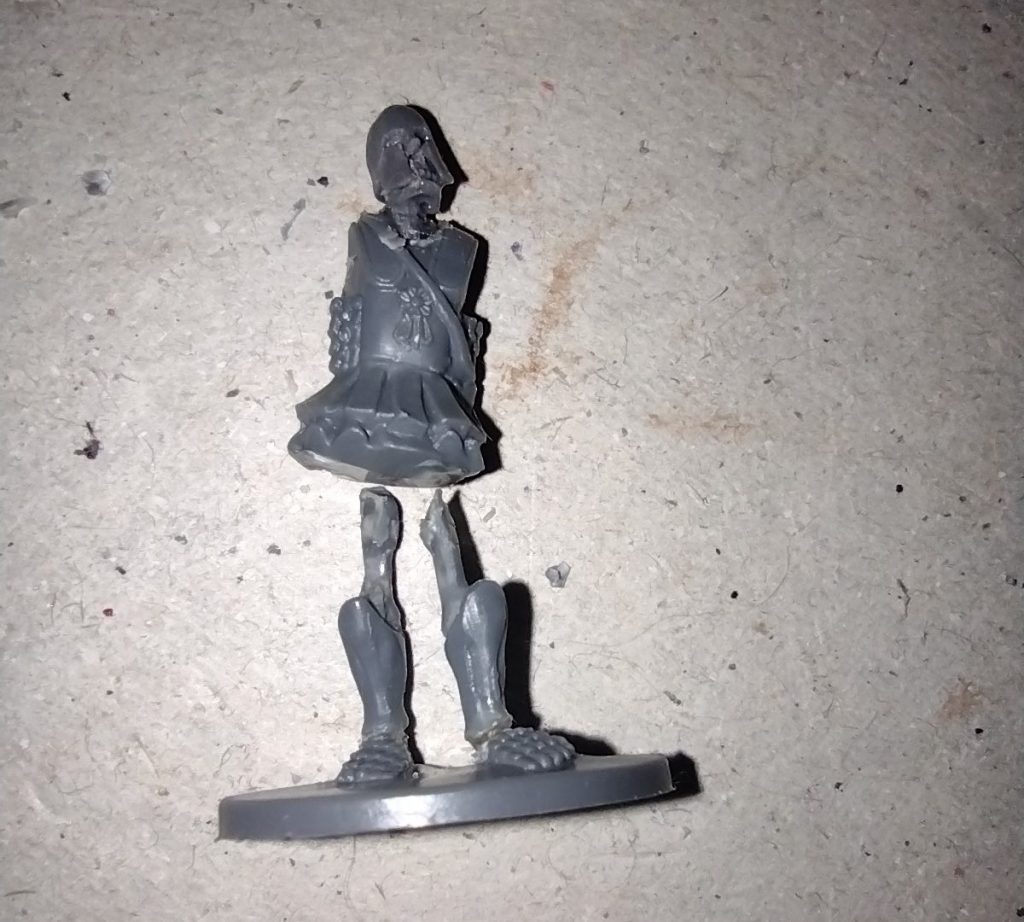 Next I cut up both minis to separate out the parts of the legs I was going to use and the hoplites torso.